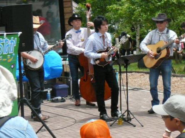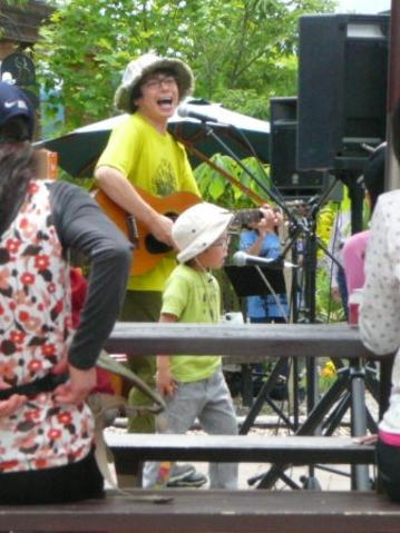 屋外にもかかわらずコンデンサーマイク1本のパフォーマンス、実にカッコ良かった。しっかりしたコンセプトをお持ちの素晴らしいバンドです。皆さんとてもいい方で、親しくお付合いの程お願いしました。演奏終了後にご挨拶と思っていましたが、ギターの吉田恒星さんに気付かれてしまって、先に挨拶を受けてしまいました。同行の桃太郎氏と恐縮しきり・・・
